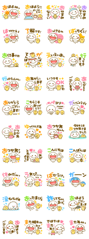 ゆるかわ棒人間とぴよこのカラフルなデカ文字スタンプです♪ なつかしの言葉もちょこちょこ入ってます♡ぴよたぬき♡ より発売