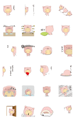 きぐるきっずの動く!ふてくされブスぶたバージョン♪全開でふてたいときに使えるスタンプ。