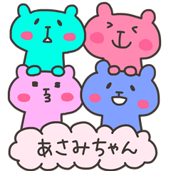 「あさみちゃん」「あさちゃん」「あちゃみ」専用の、テンション高めなくまのスタンプです。うさぎバージョンの「あさちゃんフォー!」とあわせて使ってね。