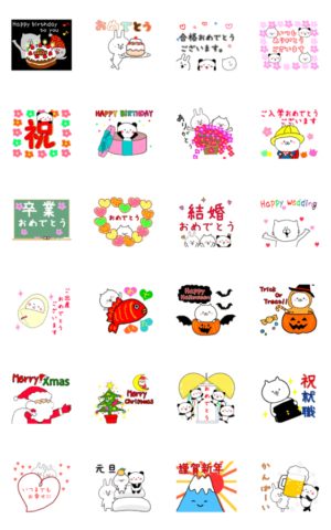 お祝い用アニメーション スタンプ♫ 誕生日はもちろん、ハロウィン、クリスマス、お正月にも使えます。結婚、出産、卒業、入学、合格、就職などのお祝いに☆