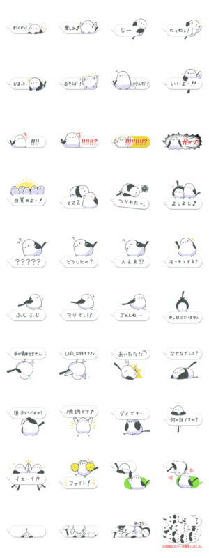 吹き出しで遊ぶシマエナガ達の可愛いスタンプ続編です。 モフモフする?卯月つくし より発売