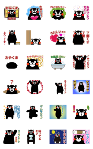 熊本大好き!熊本県営業部長くまモンの動くスタンプです。おなじみのくまモン語があるよ。着せかえも販売中!許諾番号©2010熊本県くまモン#K23507
