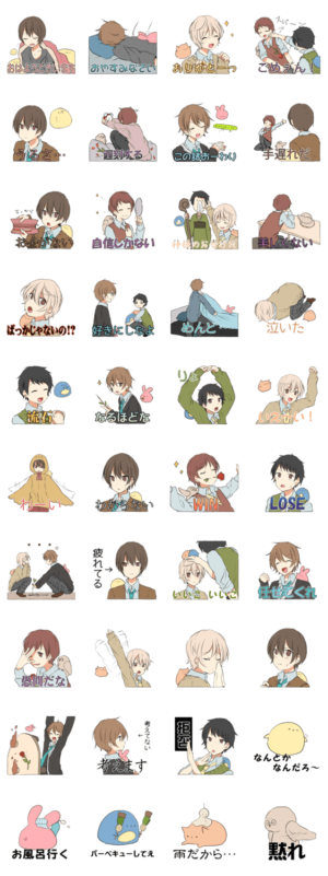 男子高校生と動物のスタンプ、第三弾!五人になりました。テレビ風