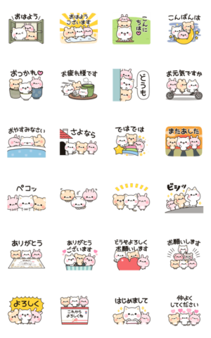 気づかいのできるネコとその友達のうさぎ・くまの便利な挨拶セット!敬語・タメ語両方あるので誰にでも使える♪20/4/2から期間限定で販売していたスタンプの復刻版ですDECOR より発売