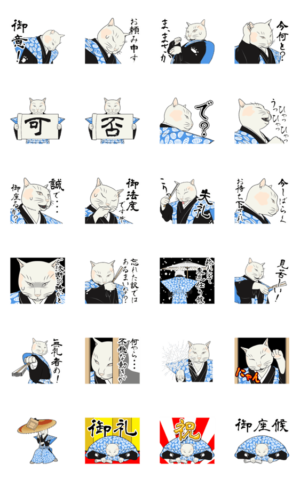 動く!浮世絵スタンプ『口上猫ちゃん』 スタンプに書いてある文字一覧