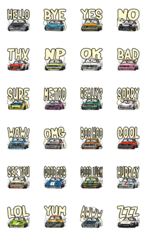 オジゾー(イラストレーター)の"Crazy Car Art"が海外からのリクエストに応えて完成したカスタムした旧車の英語スタンプ、第4弾!今度は動きます!