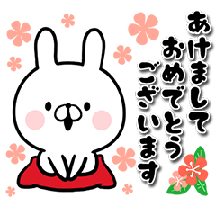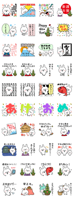 年賀状代わりに毎年使えるうさぎスタンプです♪あけましておめでとう、HAPPY NEW YEAR等、年末年始、冬、新年の挨拶に使えるあけおめスタンプ!Aworks より発売