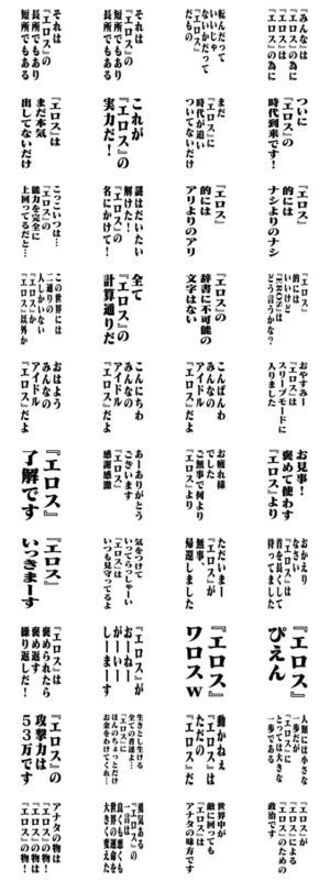BIGスタンプ/お名前/名字/あだ名/毎日使える/挨拶/日常会話/名言/迷言/写真に使える/エロス/えろす/EROS ※このスタンプはトークルームで大きく表示されるBIGスタンプです。4A-Studio(よんえーすたじお) より発売