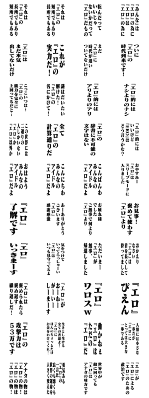 BIGスタンプ/お名前/名字/あだ名/毎日使える/挨拶/日常会話/名言/迷言/写真に使える/エロ/えろ/ERO ※このスタンプはトークルームで大きく表示されるBIGスタンプです。4A-Studio 2nd より発売