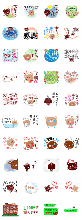 ありがとう・感謝の気持ちを伝えたい、丁寧なくまのスタンプです。 さまざまな御礼の気持ちを届けたい時にもどうぞ。ようこ より発売