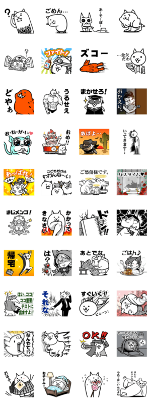にゃんこ大戦争☆キモかわスタンプ2! スタンプに書いてある文字一覧