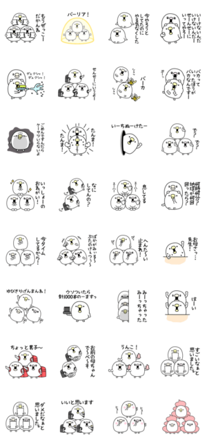 19個目です。三匹の仲のいい鳥さん達です。いつでもどこでも一緒です。絵文字もあります。