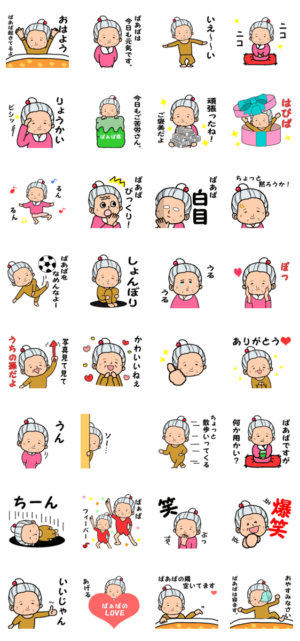全国のおばあちゃんが使えるスタンプです(^^)ご家族で、お友達同士でお使いください。おばあちゃんへのプレゼントとしてもどうぞ♪ お誕生日、敬老の日、還暦祝いなど