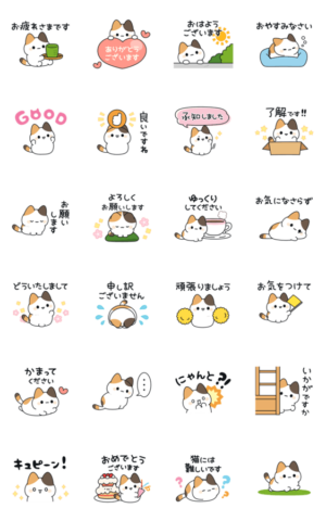 敬語で誰にでも使いやすい♪短足な三毛猫のアニメーションスタンプです。DECOR より発売