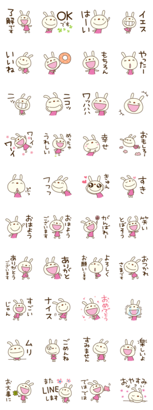 てるてるうさぎ。笑う編。「フフフ」「ニッ」から「笑いとばそう」まで。笑うてるてるうさぎで、笑顔になるメッセージを届けよう。家族、学校、お仕事でも。Mami / エストループ より発売