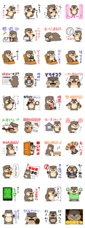 太っちょカワウソによる人を誘う時に便利なスタンプです。言葉だけと違い楽しく面白く相手を誘えるので、成功率も上がるかもしれませんよ。まさひさ工房 より発売