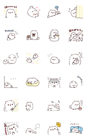 お餅みたいなポメラニアン"もち"のスタンプ。 もちもちふわふわ動きます。mal より発売