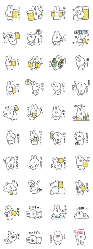 シュールなミニうさぎのお酒スタンプです。eribo より発売