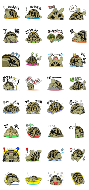 きままなリクガメの日常を切り取った楽しいスタンプ!亀好きさん、動物好きさん、ほんわか好きさん大歓迎。笑いと癒しと使いやすさを散りばめました。