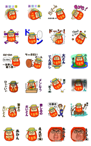 達磨のだいどん。ステキな我等のドン。あだ名がダイドン、本名ダイドンな人なら名前スタンプとしても使えるかもくらんく より発売