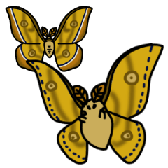 ディフォルメされた巨蛾・ヤママユの仲間たちのスタンプ! 日本産ヤママユの代表的な4種、ヤママユ・クスサン・シンジュサン・オオミズアオを使用!