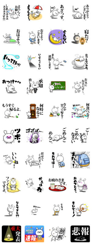 ひねくれうさぎの第2弾スタンプ。毎日使える言葉を集めました。ひねくれた態度がかわいいうさぎです。目上の人にも使えるよう、敬語や素直な言葉もたくさん入っています。ともぞー より発売