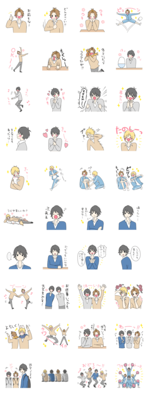 ハイテンションボーイ、純朴ボーイ、猫ボーイ、マイペースボーイの元気で仲良しな男子高校生たちのスタンプ第2弾です。田ばた より発売