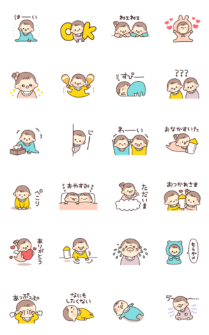 かわいい赤ちゃんがよちよちと元気にうごくアニメーションスタンプです!お父さんやお母さん、皆がつかえる日常のことばもいっぱい♪DECOR より発売