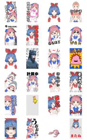おめがってるー?! バーチャルYouTuberのおめがシスターズのBIGスタンプです!赤いリボンがおめがレイで青いリボンがおめがリオです。 ※このスタンプはトークルームで大きく表示されるBIGスタンプです。OMEGA-SISTERS より発売