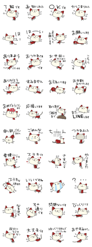 手描きイラストの様なねこの敬語スタンプです。お友達はもちろん目上の方にも送りやすいスタンプです。