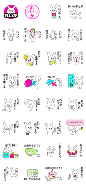 名前が『れいか』の人が使える名前スタンプです。れいかちゃんへのプレゼントにもどうぞ。レイカ、怜香、麗佳、玲香、麗香(ちゃん/さん)など。