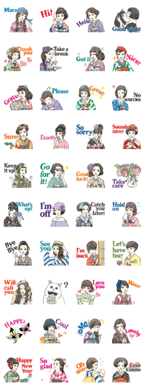 第2弾!きもの番長こと、松田恵美が全ての着物好きに捧ぐ!毎日、使えるスタンプ40種!英語版です。