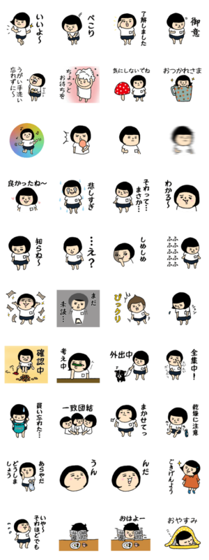 日頃使うあいづち、返事、挨拶が含まれたスタンプです! ちょっと秋入ってます!chibo より発売