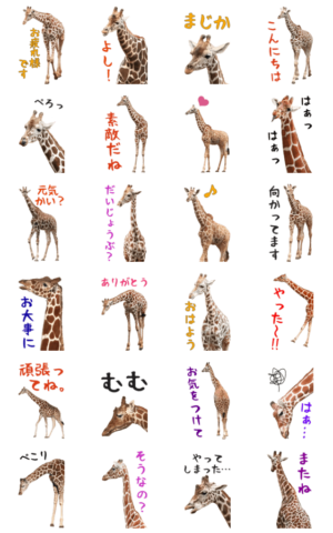 「いきもの大好き!ほほえみフレンズ」より、キリンのBIGスタンプが登場!麒麟(きりん)、動物園、生き物、動物が好きな方は是非!実写「写真」ならではのリアルさです。 ※このスタンプはトークルームで大きく表示されるBIGスタンプです。ふくろう より発売