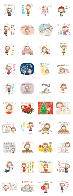 冬らしくて使いやすいスタンプです。クリスマスやお正月にも使えるので、毎年活躍しそうです。