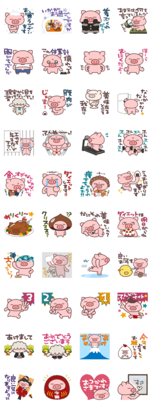 秋の味覚攻撃に抗う術もなく、まんまと服を縮められてしまったぶたた。クリスマス・お正月などイベント続きの冬にダイエットしながらごはんをいっぱい食べます。decosmith より発売