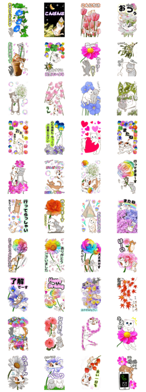 かわいいカラフルな小さな猫ときれいなお花のビッグスタンプです。大人でも毎日日常的に使いやすく、挨拶など敬語が多目です。大人女子にもおすすめ。&コロナ ※このスタンプはトークルームで大きく表示されるBIGスタンプです。ことぶき より発売