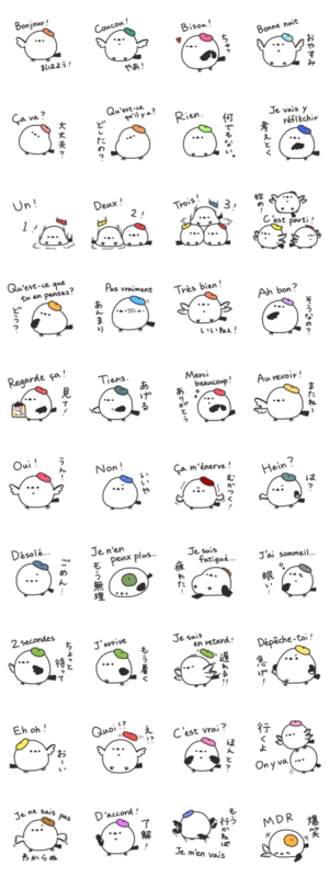 かわいいシマエナガのスタンプ、フランス語ver.です!みゅん より発売