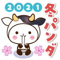 2021年のパンダは丑年の格好で登場!クリスマス/年末年始/大みそか/正月/年賀状/新年/バレンタイン/節分に使えます。