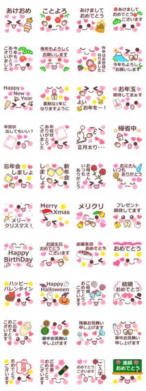 顔文字で❤️年間イベント&おめでとう! スタンプ画像一覧