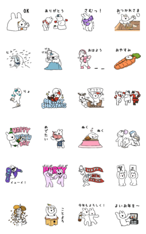 冬は、いろんな動物中でも、キャラとしてうさぎがスタンプで使いやすいですね。