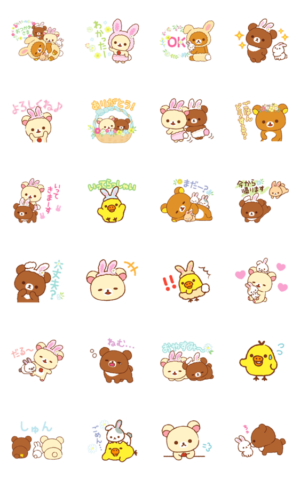 うさぎがテーマのリラックマのスタンプです!「いってきます」「今帰ります」などのスタンプが多く家族間で使いやすいところが特徴です!