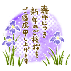 喪中・寒中お見舞いのスタンプです。 年末 年始 挨拶 和風 和柄 花 猫 寒中見舞い 文字 テキスト 季節 行事 イベント 冬