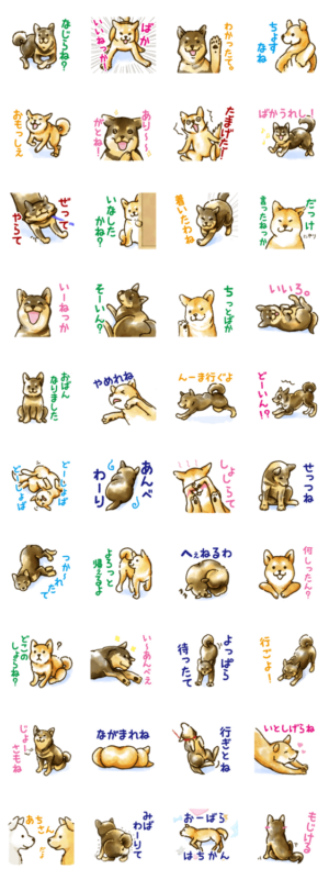 新潟弁を話す柴犬たち(茶柴&黒柴) スタンプ画像一覧
