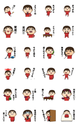 芋ジャージ男子のアニメーションスタンプ家族連絡編。一緒に暮らしている家族、同棲中のカップル、ルームシェアや同居中の友達との連絡に使えます!名前無しバージョン。くーが より発売