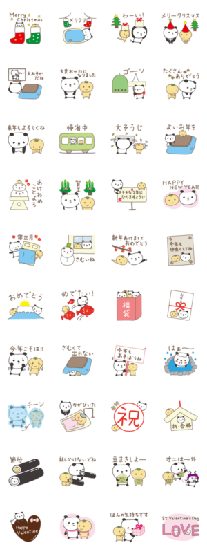 冬のイベント パンダちゃんとみかんちゃん スタンプ画像一覧