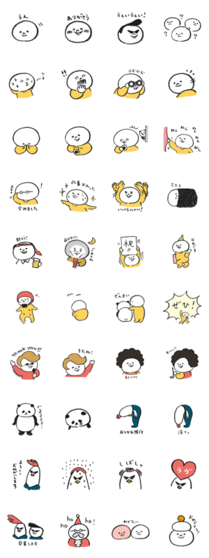 まるっともっちりもちぼんのスタンプ第2弾です。2017年は酉年。お友達のにわとりもよろしくね☆acnooon より発売