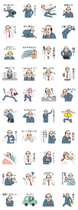 父のつぶやき12【お仕事仲間編】 スタンプに書いてある文字一覧