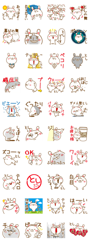としくんやとしちゃんが使えるスタンプです。としあき、としお、としひろ、としこ、としゆき、俊樹、としかず、敏子、利美、としやなど【とし】がつく人専用の名前スタンプ