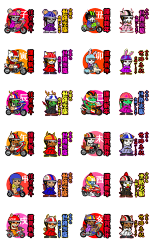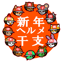 世路志駆ヘルメ干支の集大成!十二支の年賀スタンプをコンプリート!これ一つで12年使えちゃう優れもの!即出の十二支編及び同シリーズと合わせて使うとより一層楽しめますMURU より発売